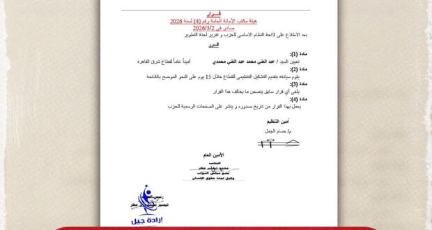 في خطوة تعكس توجهًا استراتيجيًا نحو تعزيز الكفاءات والخبرات الاقتصادية داخل الكيانات الحزبية، صدر قرار ...